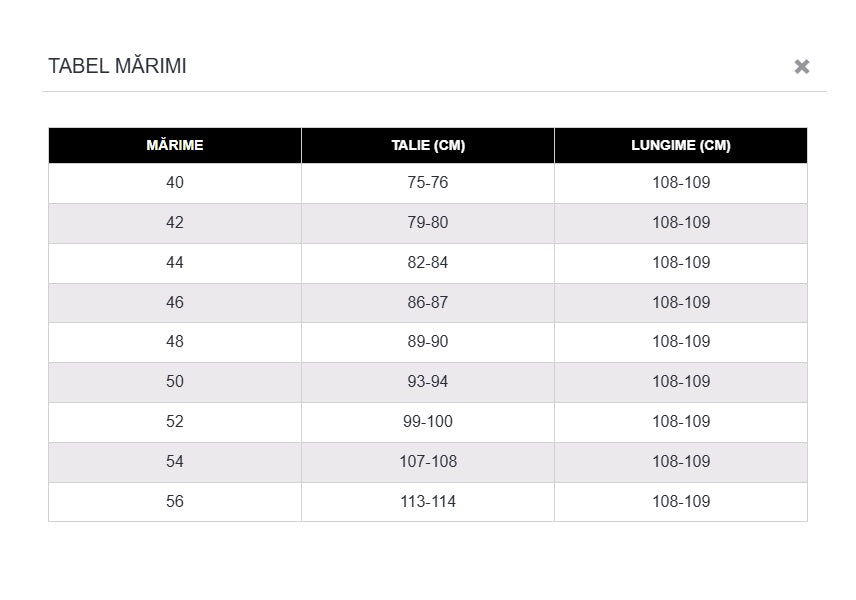 ATENȚIE LA TABELUL DE MĂRIMI!