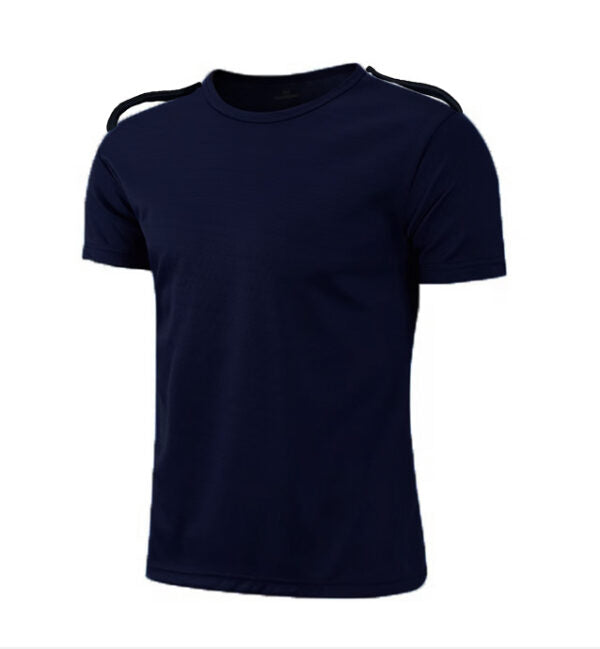 Culoarea tricoului este bluemarin și este prevazut cu epoleti .